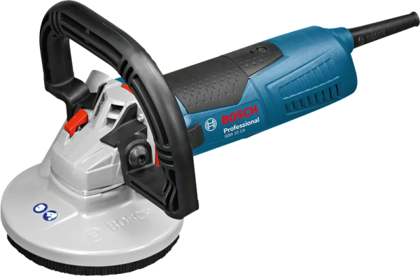 The GBR 15 CA Professional is a powerful corded concrete grinder featuring a durable metal guard. Its high-performance 1,500 W motor ensures fast work progress, even under load. Designed with an ergonomic handle and low weight, it offers comfortable handling during extended use. This concrete grinder also includes optimized dust protection with a special sealing system and a robust metal dust guard.