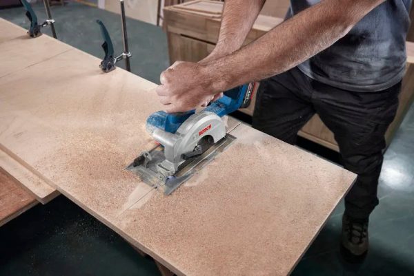 The Bosch GKS 18V-51 Professional circular saw is designed for cross-cuts in wood, rip cuts in plywood and OSB boards, and for making bevel cuts in wood. It provides a maximum cutting depth of 51 mm at 0° and 35 mm at 45°.