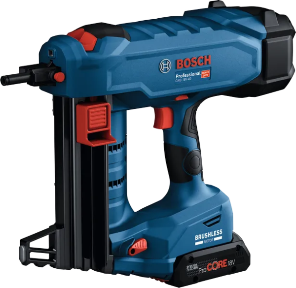 Fastening your cables and conduits into tough materials like concrete and steel should be easy, efficient, and intuitive. The GNB 18V-40 Professional helps you get the job done. Powered by our strong brushless motor technology, it is part of the Bosch Professional 18V System. All you need is a ProCORE18V battery to get started—no additional gas cartridges required. We developed a reliable fastening system that includes both tool and nails, so you can focus entirely on your work. Certified galvanized carbon steel nails ensure long durability in both concrete and steel. We offer a range of nails from 16 mm up to 40 mm for concrete and 13 mm up to 19 mm for steel applications. Both the tool and nails have been tested and certified according to ETA or ICC standards.