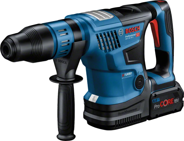 Thanks to its BITURBO Brushless technology, this rotary hammer delivers an impressive maximum impact energy of 7.0 J. It is fully compatible with all Bosch Professional 18V batteries and chargers (Professional 18V System). For maximum performance, it is recommended to use ProCORE18V 8.0 Ah batteries. It is also part of the AMPShare multi-brand battery alliance for broader compatibility.