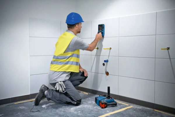 The wall scanner detects objects at depths of up to 20 cm and indicates the object’s depth.