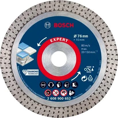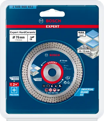 The Bosch EXPERT Hard Ceramic offers the best cutting performance on porcelain tiles. You can be confident of achieving a professional finish on every job with this diamond cutting disc.